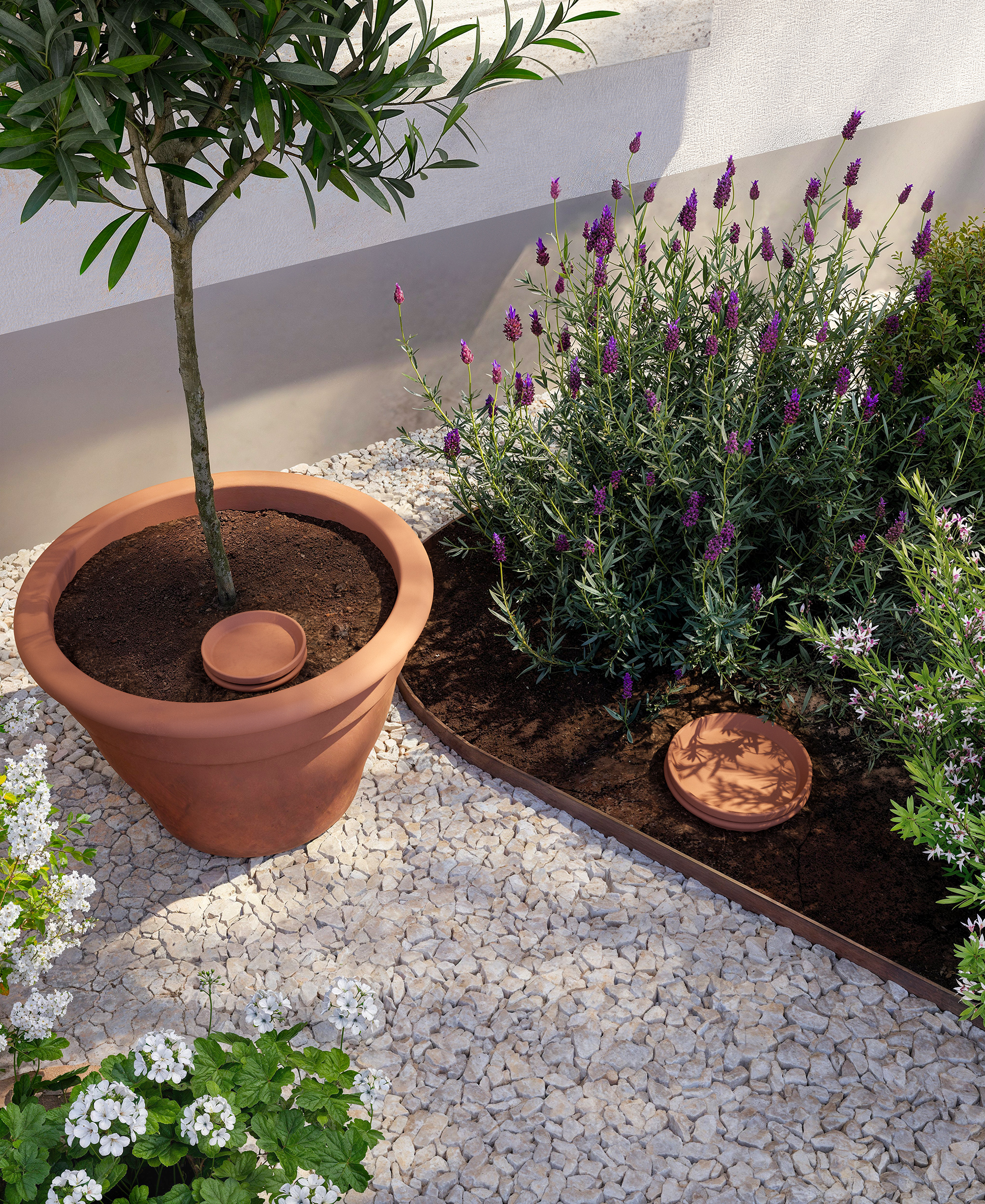 Traditional terracotta self-watering system, made from 100% natural clay, breathable and frost-proof. Includes traditional terracotta pot and saucer. Suitable for outdoor use, with a capacity of 1L. Allows up to 10 days of watering. Made in Portugal.