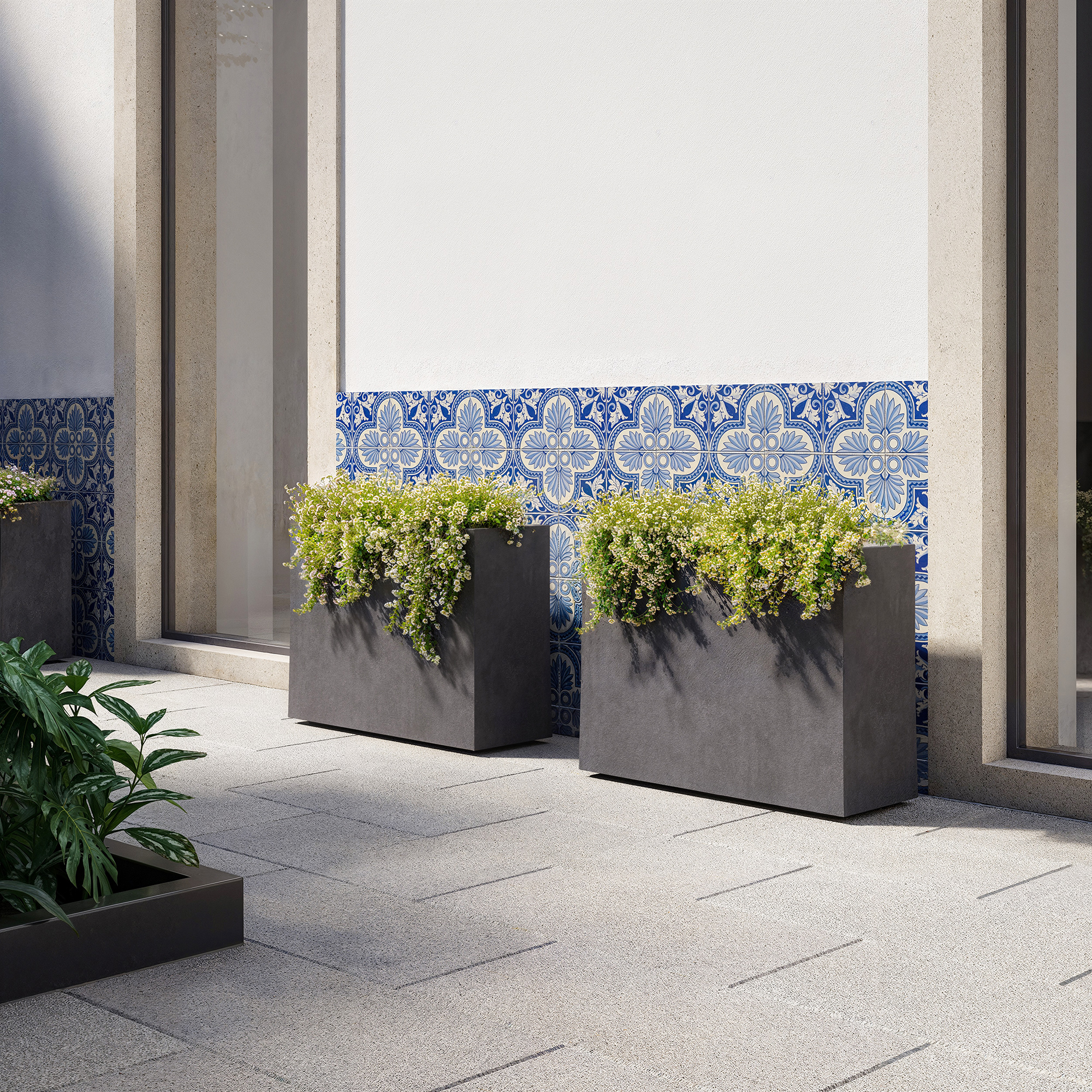 A range of plant boxes and square pots with elegant lines, deeply inspired by the splendid architecture of the Australian city of Sydney. With an innovative design, textured appearance and matte finish, the Sydney range is double-walled, increasing the product's strength and durability and preventing deformation or breakage. Likewise, the Sydney pots and plant boxes have a water reserve and drainage holes to prevent waterlogging, improve root ventilation and allow them to be used indoors and outdoors.